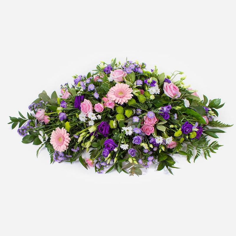 Pretty pinks and purples with  roses, germini, lisianthus, chrysanthemum  and aster.